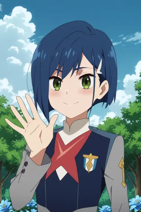 トリガー:ichigo,1girl,solo,short hair,uniform,military_uniform,military,hair ornament,hairclip