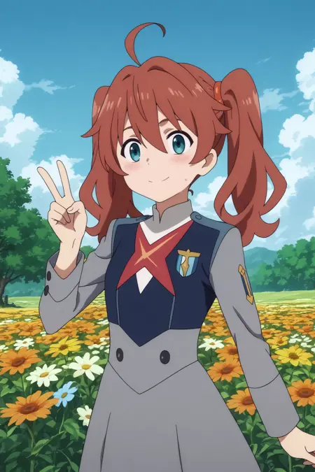트리거: kokoro,1girl,solo,long hair,twintails,ahoge,uniform,military,military_uniform,long hair