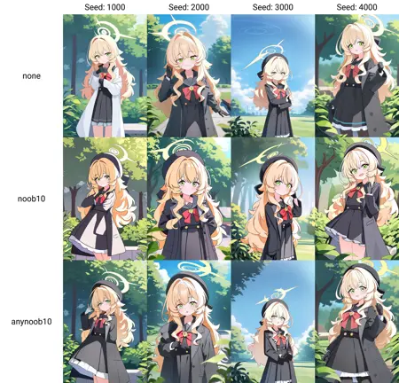 なお、NoobAI-XLの成分が薄いマージモデルではLoRAの効果が低下します。