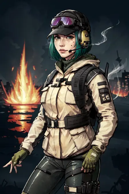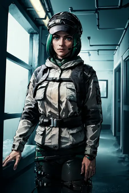 主な衣装(モデルによっては必須ではない):帽子、ジャケット、指なし手袋、軍用制服、ヘッドセット、そばかす、頭にかけたゴーグル