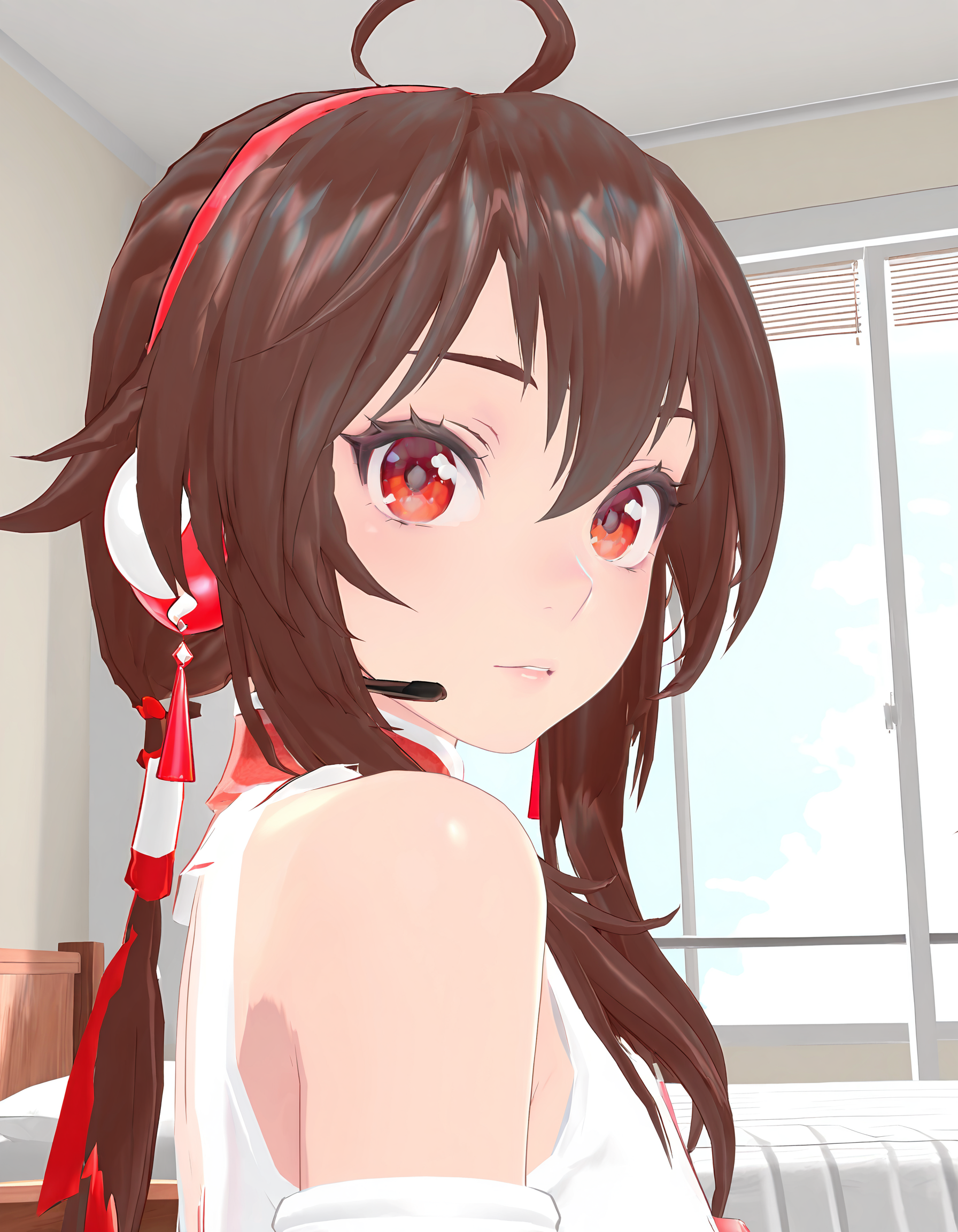 lora:YueZhengLing_GongShi_Illustrious:1, YueZhengLing, 빨간 눈, 갈색 머리, ahoge, 긴 머리, 앞머리, 머리 장식, 헤드폰,