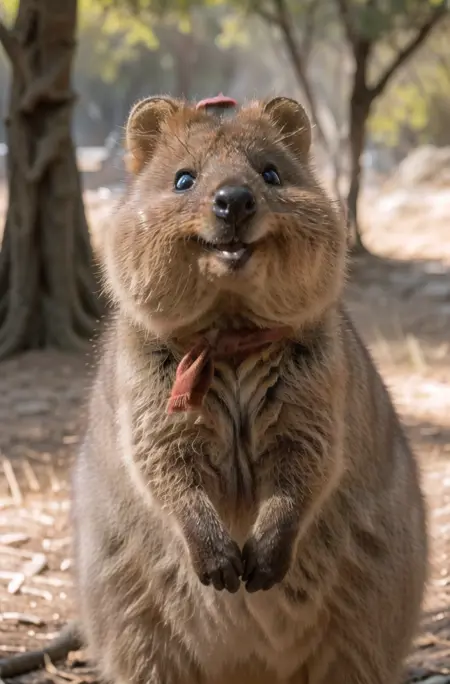 The quokka (/ˈkwɒkə/) (Setonix brachyurus)is a small macropod about the size of a domestic cat. It is the only member of the genus Setonix. Like other marsupials in the macropod family (such as kangaroos and wallabies), the quokka is herbivorous and mainly nocturnal.