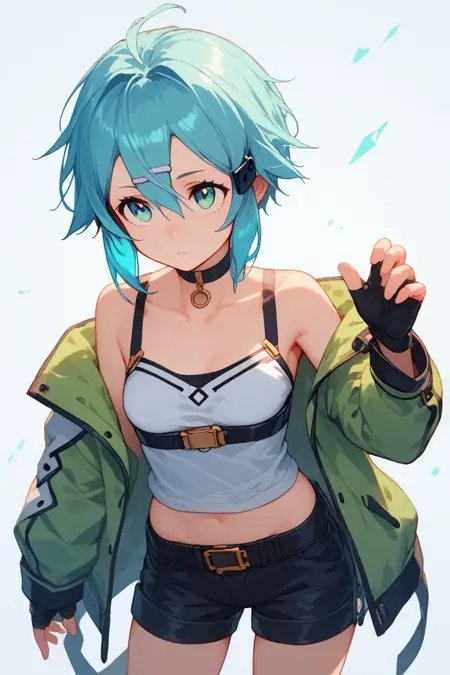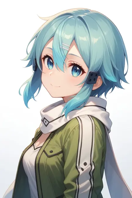 - 1girl, solo, 髪飾り, 青髪, 目の間の髪, 青目, ヘアクリップ, つやつやした髪, 短髪, つやつや, サイドロックス, 前髪