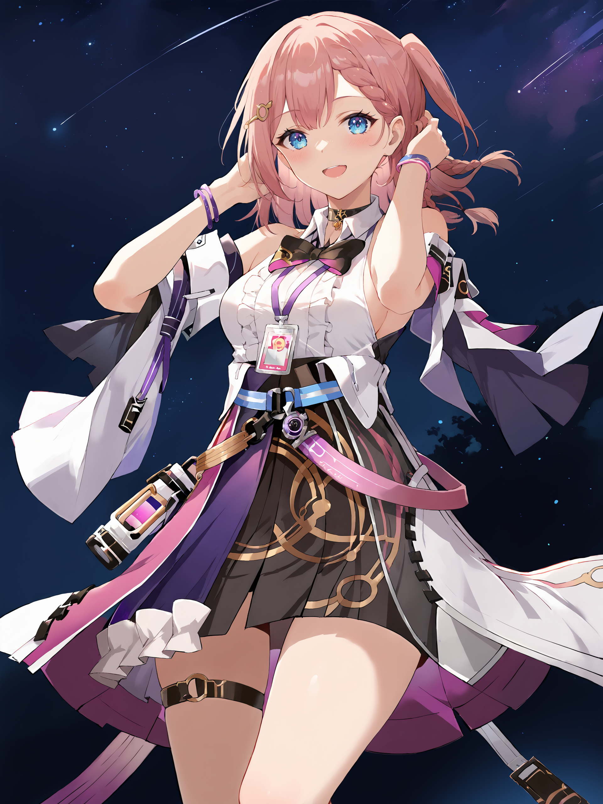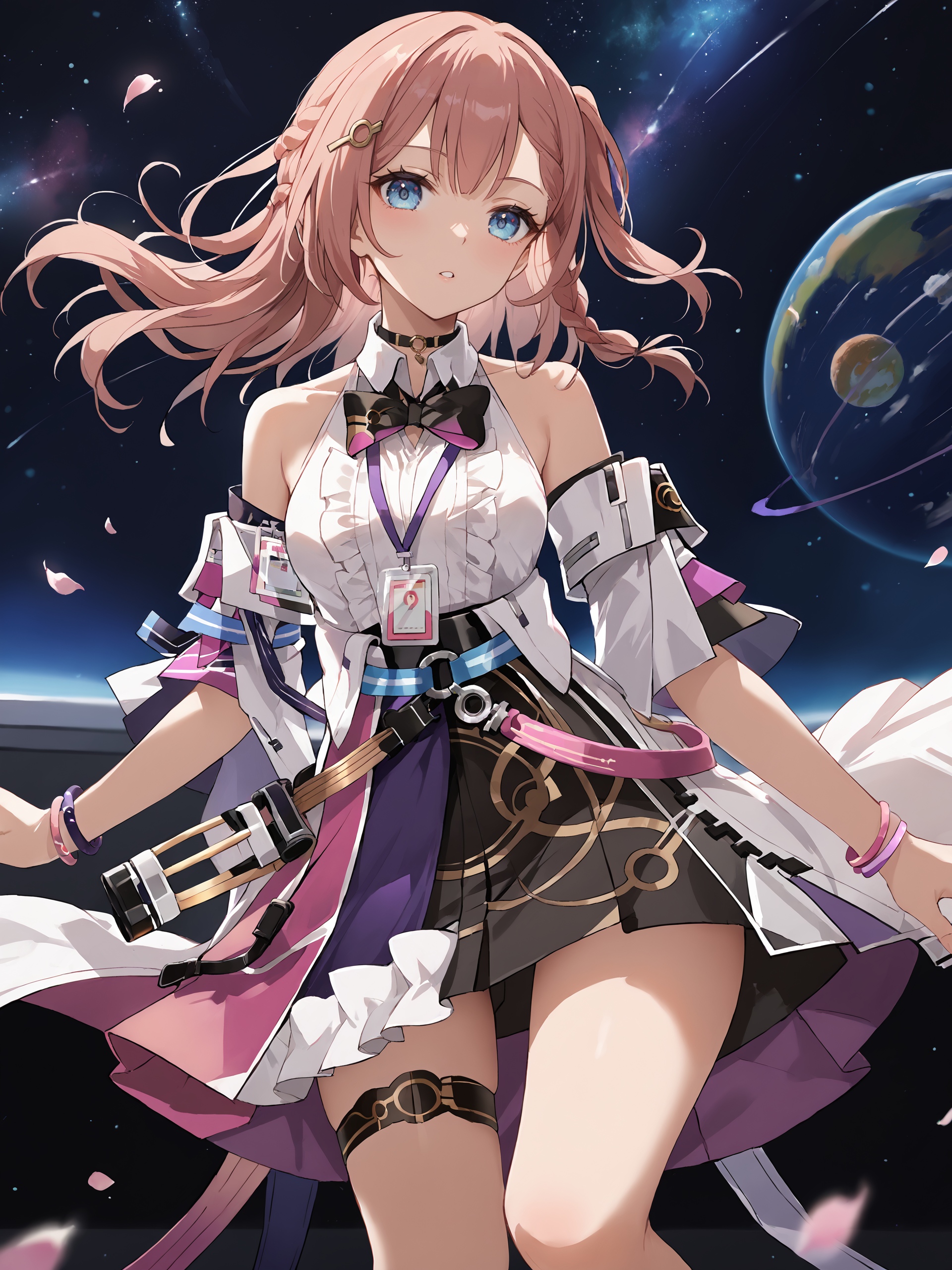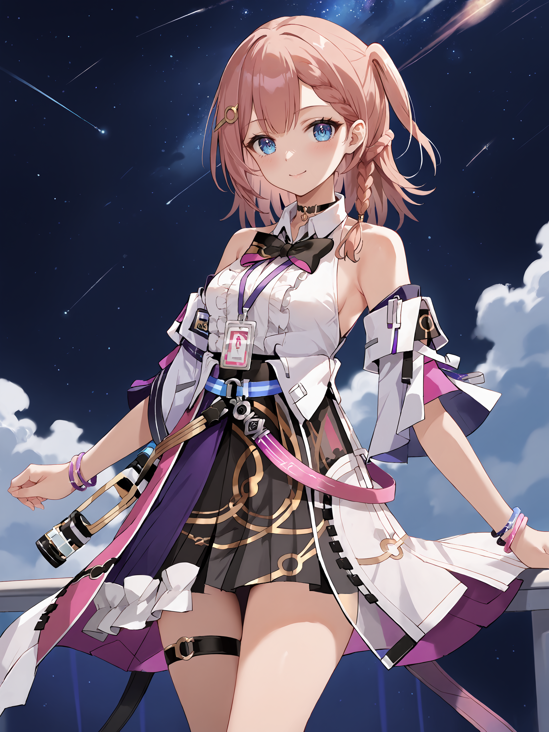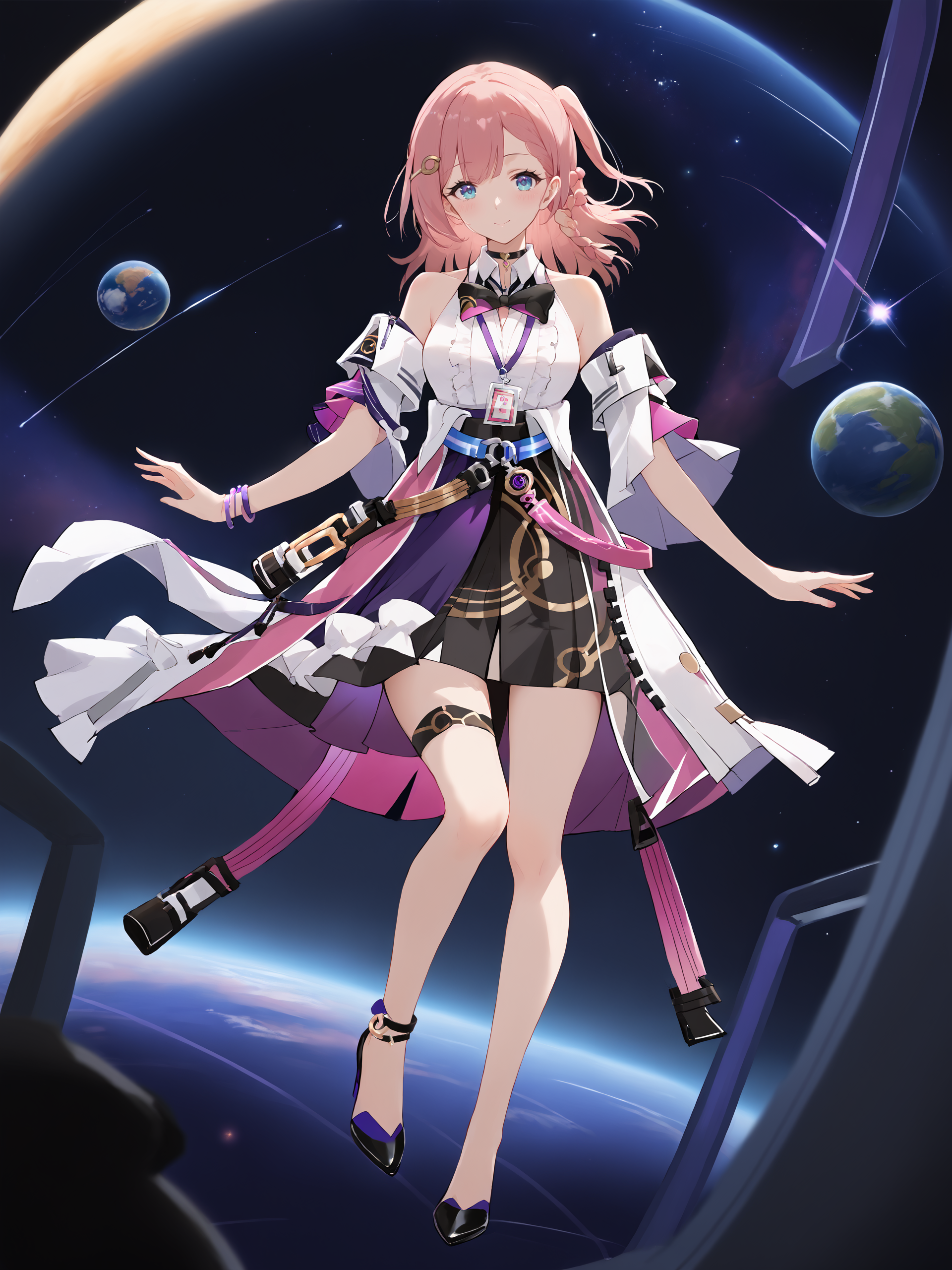 However, if some the features does not displayed correctly, please add the following prompts if necessary: detached sleeves, sleeveless shirt, id card, high heels, high-waist skirt, overskirt, anklet, thigh strap, bracelet, hairpin, belt, bowtie, choker