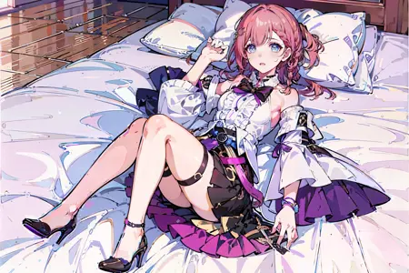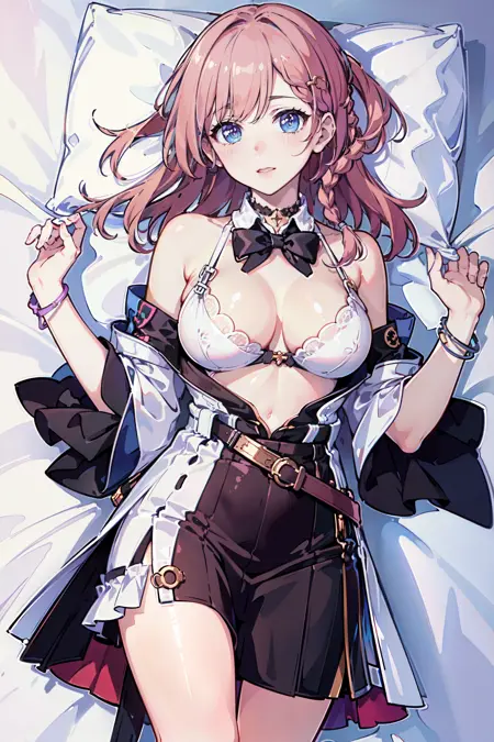 그러나 일부 특징이 제대로 표시되지 않는 경우, 필요한 경우 다음 프롬프트를 추가하세요: 분리형 소매, 어깨가 드러난 셔츠, 신분증, 하이힐, 고무리 치마, 겉치마, 발목줄, 허벅지 스트랩, 팔찌, 머리핀, 벨트, 리본 넥타이, 초커