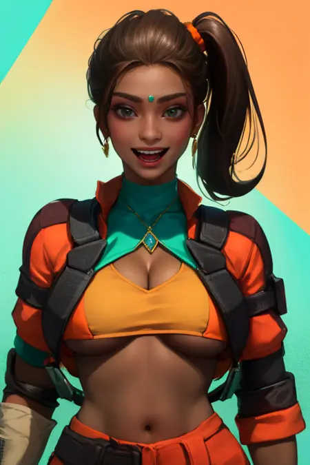 Rampart,棕色眼睛,棕色头发,- 侧马尾,- 刘海,放在NEG中