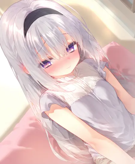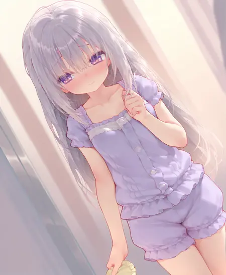 基础形象tag:manami, 1girl, solo, long hair, silver hair, purple eyes, blush