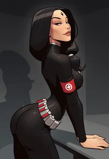 推奨タグ: アジアン、腕バンド、黒髪、胸、長い髪、ベルト、黒目、肩に髪を垂らす、大きな胸、顔の模様、長袖、黒いドレス、