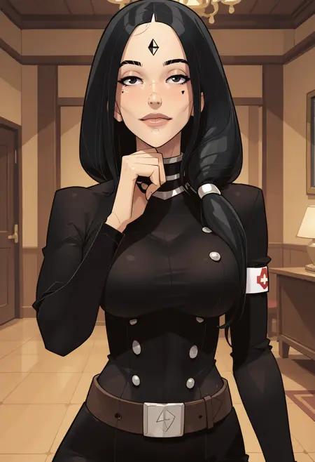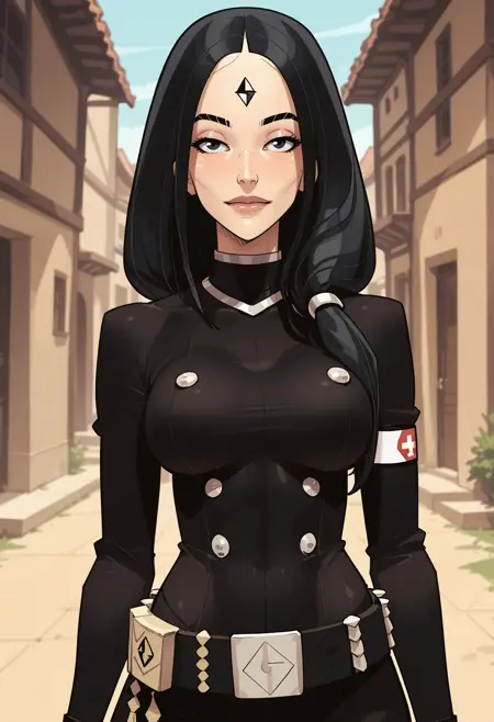 uniform, dress, black dress, buttons, armband, belt, white belt,