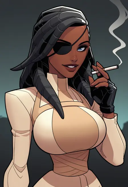 推荐标签:胸部,眼罩,蓝眼睛,深色皮肤,深色皮肤女性,黑发,长发,服装,
