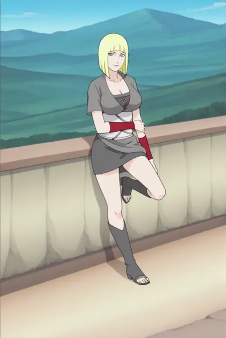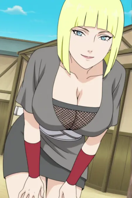 <lora:NarutoSamui-IL-v1-08:0.9>, ChopioSamui, blonde hair, medium hair, bob cut, blunt bangs, blue eyes, looking at viewer,