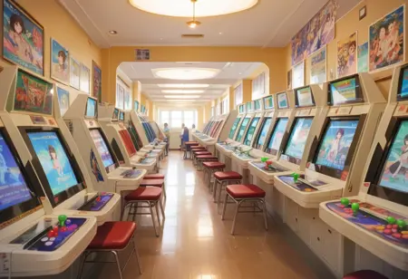 This is a LoRA that might depict a scene from a little old Japanese arcade with medium-sized chassis. これは少し昔の日本のゲームセンターのミディアム筐体が並ぶ風景を描くことが出来るかもしれないLoRAです。