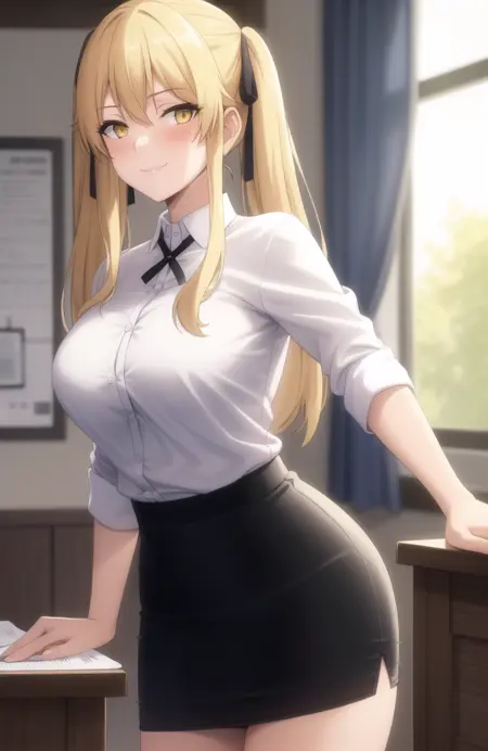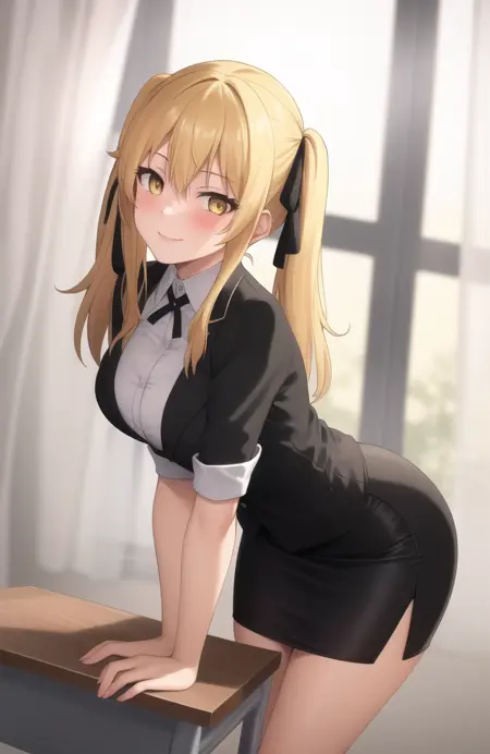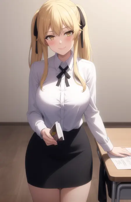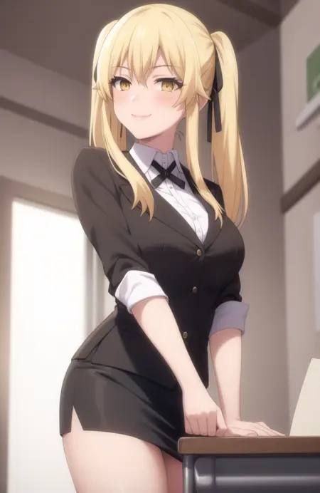 <lora:MarySaotome-IL-v1-08:0.9>, ChopioMary, long hair, blonde hair, twintails, black hair ribbon, sidelocks, hair between eyes, brown eyes, lips, looking at viewer,