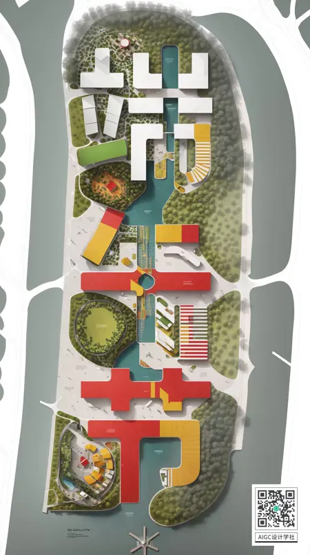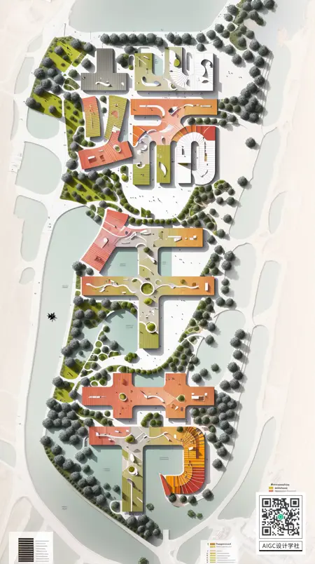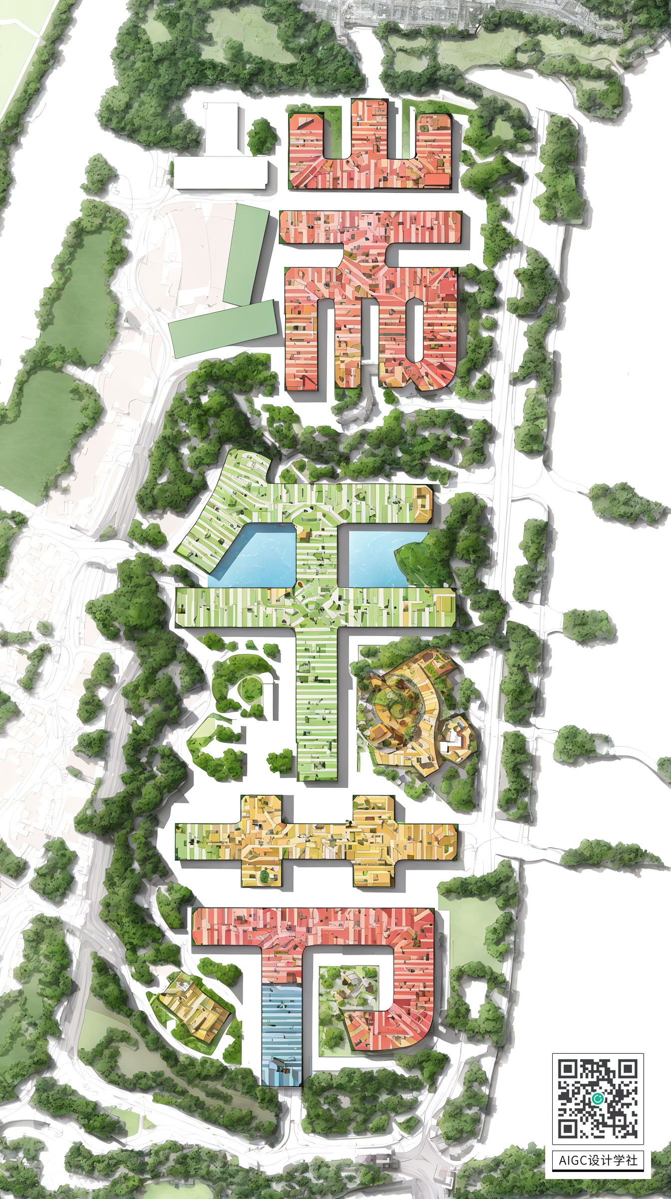 可以在空白的地块生成景观总平面的设计风格,可以用来拓展设计思路,很有趣的一个模型。