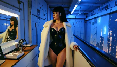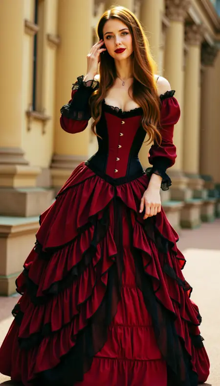 | 训练词汇 | black corset with a lace-up front, 已复制! latex outfit that includes a corset-style top with intricate lace-up detailing on the back and white panties 已复制! strapless, sheer, lime green lingerie bodysuit with intricate lace patterns. The bodysuit is low-cut, exposing her breasts, which are of medium to large size with light pink nipples. The lingerie has delicate ruffles along the top and a lace-up front, accentuating her slender waist. 已复制! white lace corset with delicate floral patterns and a sweetheart neckline. The corset has intricate lace detailing, including a lace trim around the edges and a small bow at the center of the bust area. The fabric is semi-sheer, allowing a glimpse of the skin beneath. The corset cinches in at the waist, accentuating her figur 已复制! form-fitting, black, long-sleeve bodysuit that accentuates her ample cleavage, revealing a significant portion of her breasts. The bodysuit has a high neckline and is cinched at the waist with a black, structured corset that accentuates her hourglass figure. The corset has a series of small, polished metal buttons running down the center front. 已复制! black corset cinching her waist, accentuating her ample bust. Her large breasts are exposed, with nipples slightly visible, adding to the sensual and provocative nature of the image. Around her neck, she wears a black choker with a red pendant, completing the Gothic-inspired ensemble 已复制! striking, elaborate corset. The corset is a deep burgundy color with a dark, intricate pattern, and is adorned with brass buttons and gold chains. The corset cinches her waist tightly, accentuating her hourglass figure. The corset’s top features multiple rows of brass buttons and chains draped over the upper chest area, creating a layered, ornate appearance. 已复制! white, long-sleeved, button-down blouse, which is partially unbuttoned to reveal a black, strappy bra that accentuates her ample cleavage. She wears a black leather bustier corset cinching her waist, providing a dramatic hourglass silhouette. The corset is adorned with multiple vertical rows of small buttons and has a glossy, polished texture. Her attire also includes a short, form-fitting black leather skirt that hugs her hips and thighs, ending just above her knees. She wears sheer black stockings, adding to the overall polished, provocative look. 已复制! |