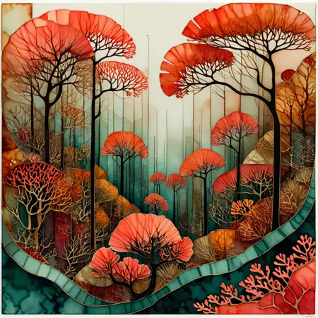 自然与幻想的融合:从色彩鲜艳、超现实的奇幻森林,到既熟悉又陌生的海滨环境,该 LoRA 创造的自然元素与建筑的宏伟相得益彰。幻想与现实的和谐交融,使每一幅场景都仿佛通往另一个世界的门户。