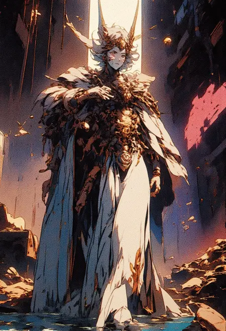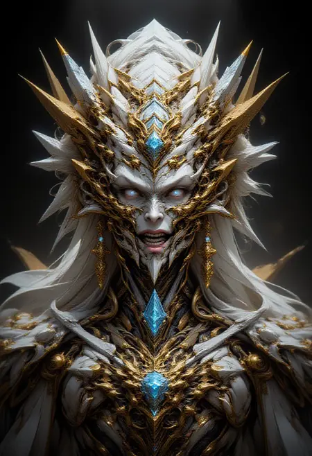 분형 요소를 가진 흰 피부를 가진 왕실 천상 존재.