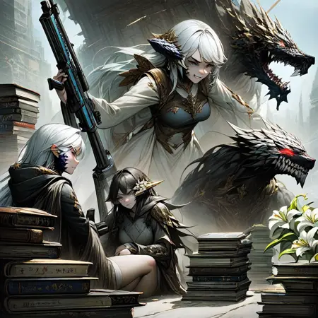 분형 요소를 가진 흰 피부를 가진 왕실 천상 존재.