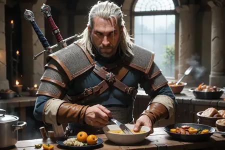 손이 이상하게 보이는 경우가 있는데, 이는 훈련 데이터에 포함된 검을 잡은 상태 때문일 가능성이 있습니다... 확실하지는 않습니다.
