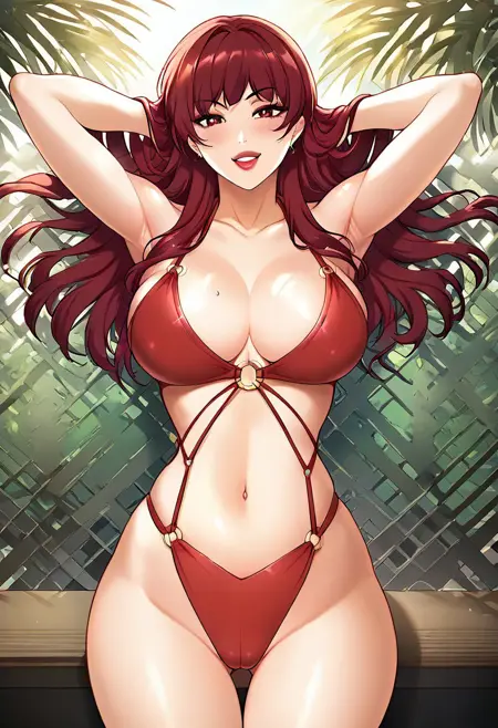 3. ((sexy erotic cut-out red swimwear, obscene cleavage, huge cleavage, ))