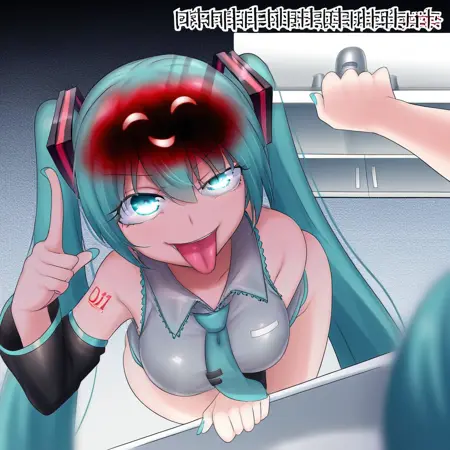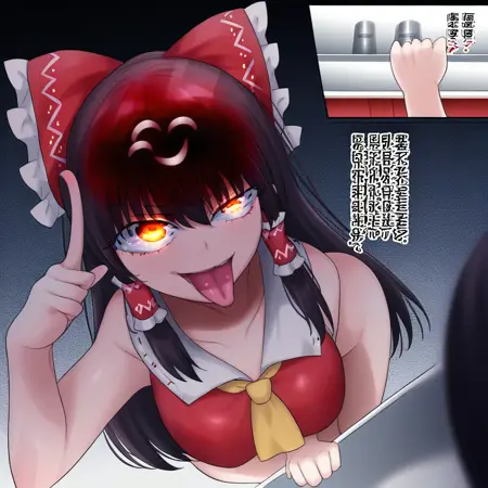 possessed, pov, 1girl, bent over, face on head, uneven eyes, tongue out, glowing eyes, looking at viewer, sink, arm support, index finger raised, pointing, large breasts