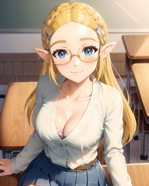 <lora:Zelda-IL-v2-07:0.8>, ChopioZelda, 金色头发, 水蓝色眼睛, 尖耳朵, 看着观众,