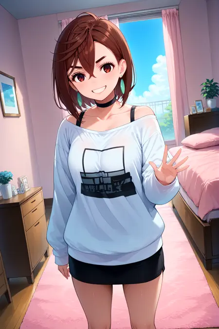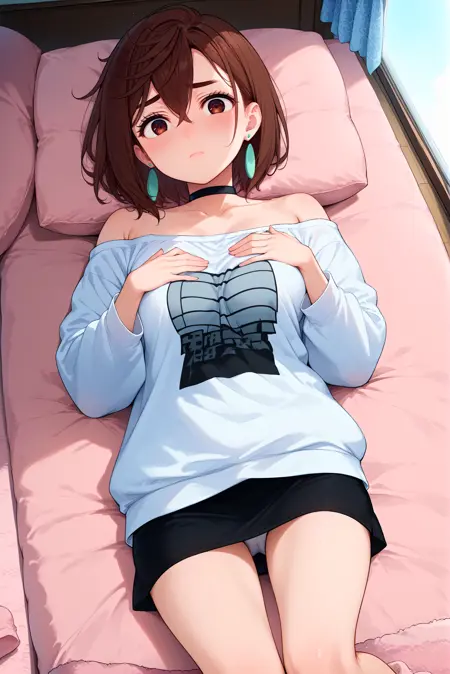 - 기본 프롬프트 (모든 옷차림에 동일): 4y453, 1girl, 갈색 머리, 귀걸이, 갈색 눈, 눈 사이의 머리카락, 단발, 두꺼운 눈썹,