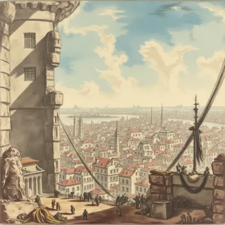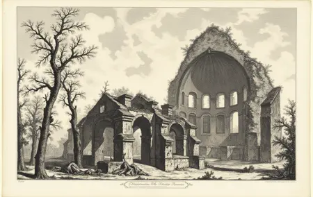 진나니 바티스타 피라네지(1720-1778)는 이탈리아의 예술가, 판화가, 건축가이자 디자이너로, 로마의 판화와 상상력이 풍부한 건축적 환상을 통해 가장 잘 알려져 있다. 그의 작품은 극적인 시점과 정교한 세부 묘사가 특징이며, 고대 세계에 대한 향수를 불러일으키는 폐허와 장대한 건축 구조들을 자주 묘사한다.