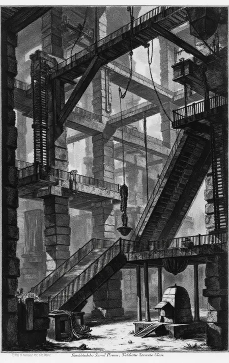 피라네지의 가장 유명한 판화 시리즈는 ‘카세리 디 인베치오네’(상상의 감옥)로, 얽히고설킨 신비로운 공간을 통해 억류와 숭고함이라는 주제를 반영한다. 또한 그는 로마의 고고학적 유적과 건축을 대규모로 제작하여 고대 로마 문화와 미학에 대한 이해를 심화시키는 데 기여했다.