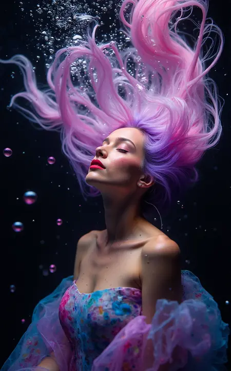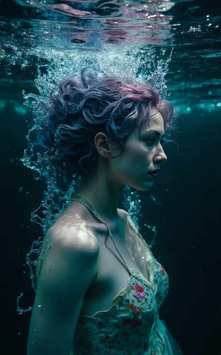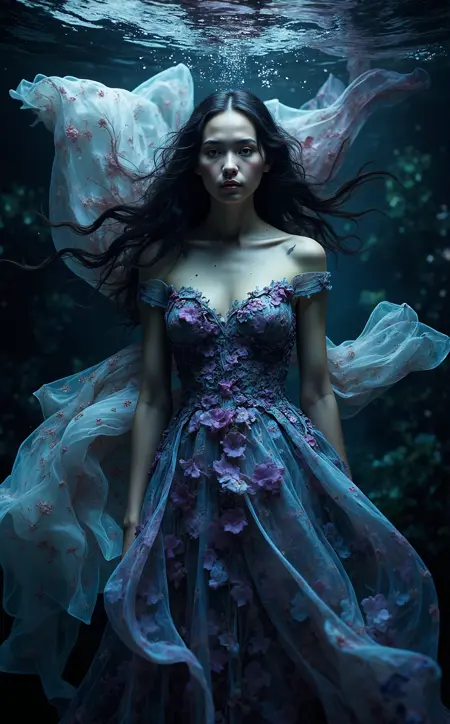 水中ファッション画像用に新しいLoRAをトレーニングし、Fluxのこの点を改善して、より豪華なスタイルを実現しました!