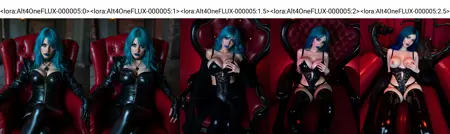 私はまだ異なるエポックをテスト中です。しかし、LoRaの重みを1から2.5の間で調整すると、さまざまな結果が得られます。3は呪われています。Distilled CFGスケールを3.5から7の間で調整すると、これもまた幅広い結果が得られます。試行錯誤して、あなたに最適な設定を見つけてください。