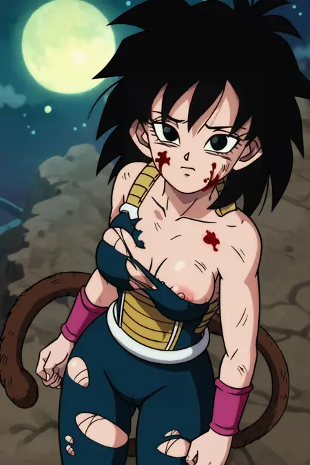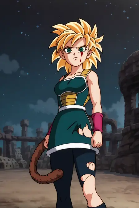 gine, 슈퍼 사이어인, 금발, 중간 길이 머리, 솔깃한 머리, 녹색 눈, 원숭이 꼬리