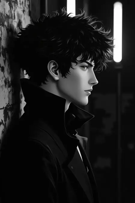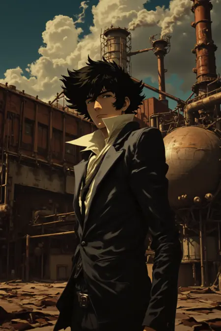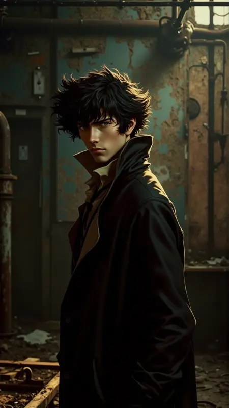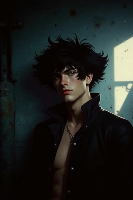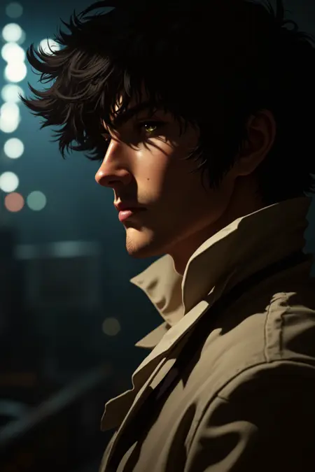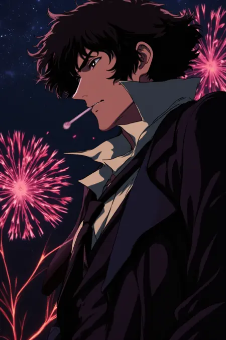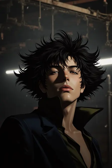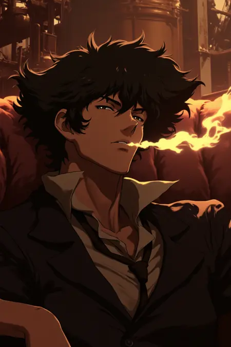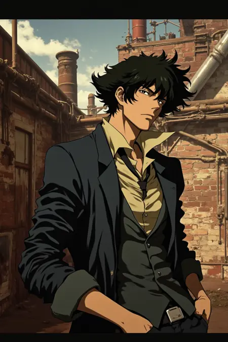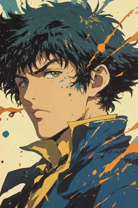 spike,90s 애니메이션 스타일, 카우보이 비밥 스타일.