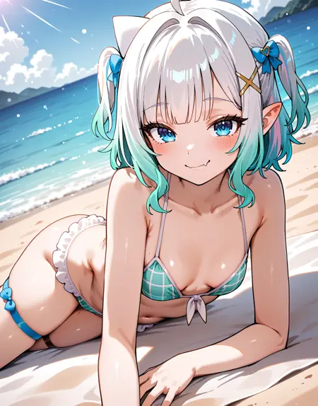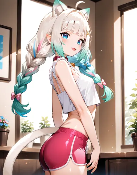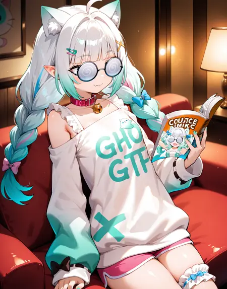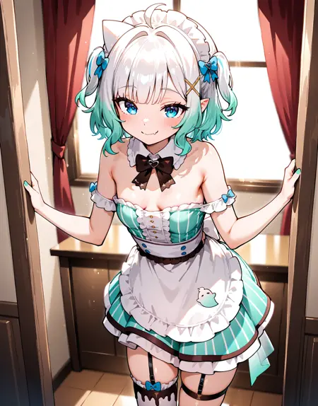 mintfantome, 단일 허벅지 스타킹, 허벅지 스트랩, 프릴, 단발, 트윈테일,