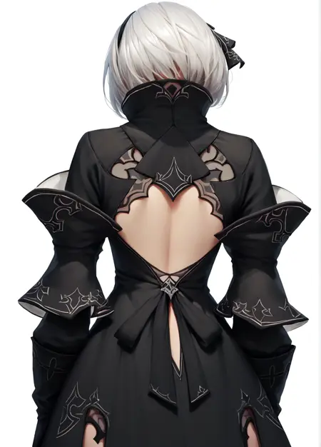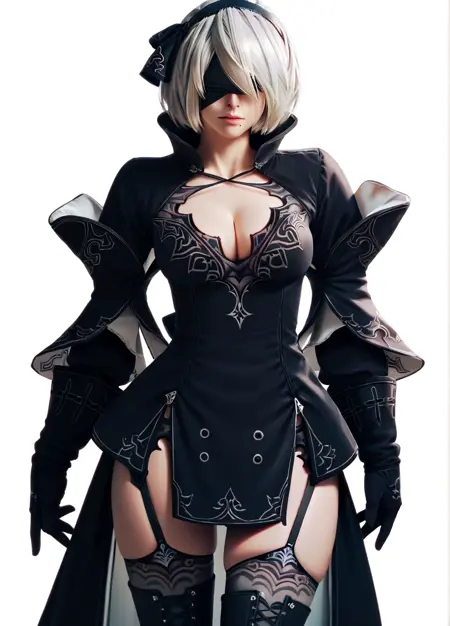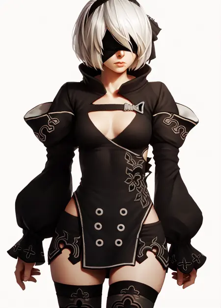 nier2Bdivergent,发带,白发,短发,泡泡袖,露乳,服装镂空,短裙,黑色过膝靴