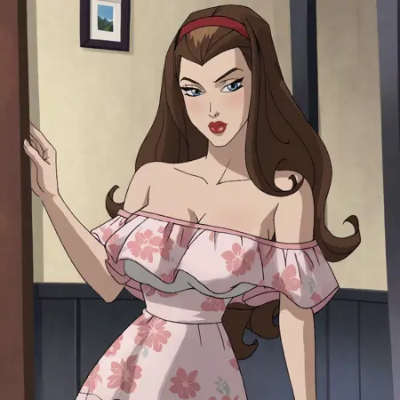 - ドレス付きトリガー:ScarletWitchWolverineandTheXmenDress, 1girl, ジュエリー, 赤いドレス, ピアス, 長い髪, 茶色の髪, ネックレス, ヘアバンド, ブレスレット, ワンショルダードレス, リップスティック, 肩出し, メイク, カウボーイショット