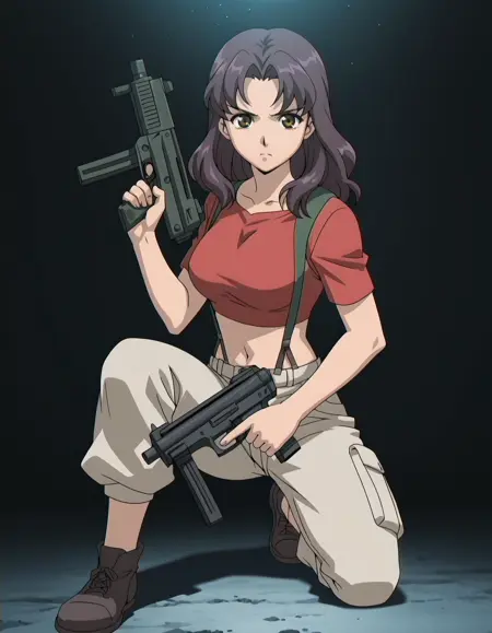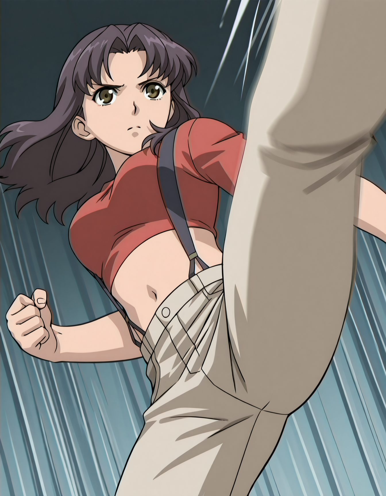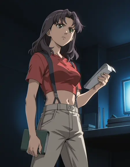 tomoko, 红色衬衫, 露脐装, 背带, 裤子ukita moe: