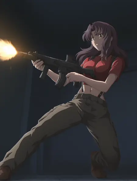 tomoko, 赤いシャツ, クロップトップ, サスペンダー, パンツukita moe: