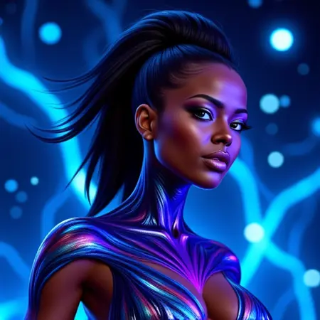 这是我为配合我的身体彩绘和特殊效果而创造的一种新风格。我很快会提供更详细的信息。这是我的石质身体彩绘系列、超级英雄身体彩绘、我的摄影以及我的平面设计和数字编辑的结合。尽情享受这一作品吧。闪电女神就在这里……