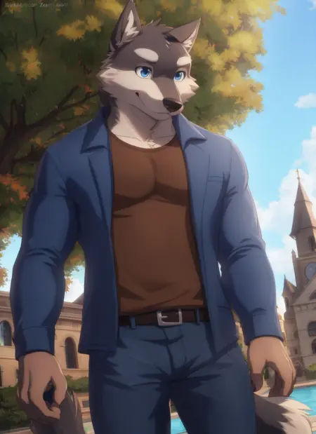 • I recommend using prompts like muscular male or bara to make it look a little more like the character.