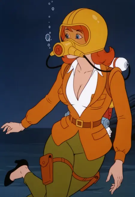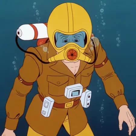Filmation의 '고스트버스터즈'에서 사용된 독특한 재호흡기/가스 마스크 디자인. 제이크, 에디, 미래에서 온 트레이시 원숭이, 그리고 에디가 후원한 "작은 형제" 앨런이 "자유의 여신상", "고스트 커맨드의 전투", "가짜 친구들" 등 에피소드에서 사용함. 이 프로그램의 이미지와 기타 유사한 이미지로 학습됨.