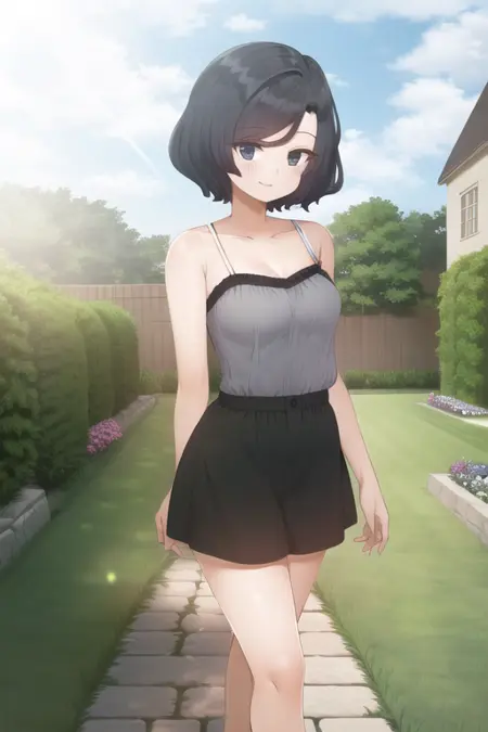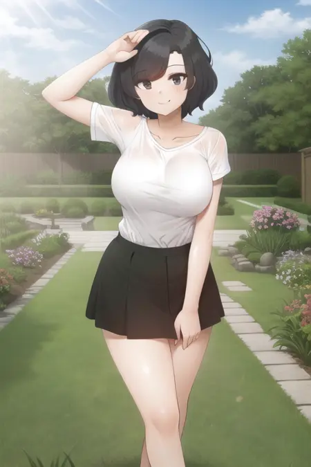 lora:Yubin-v1-01:0.7, ChopioYubin, 短发, 黑发, 黑眼, (脸红:1), 盯着观众, 1个女孩, 单人,