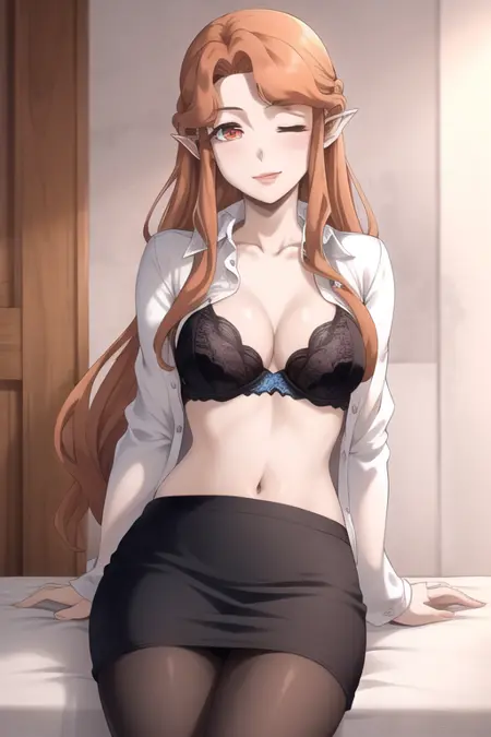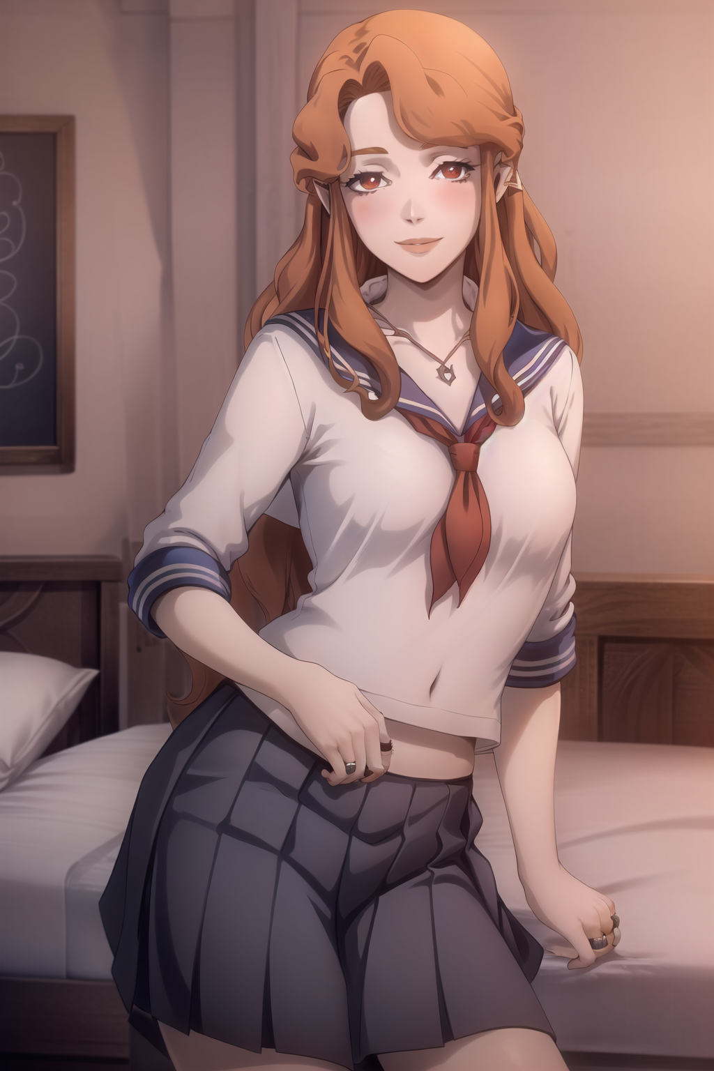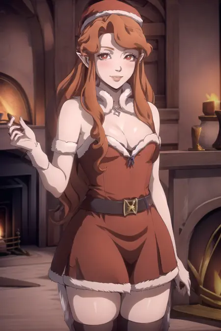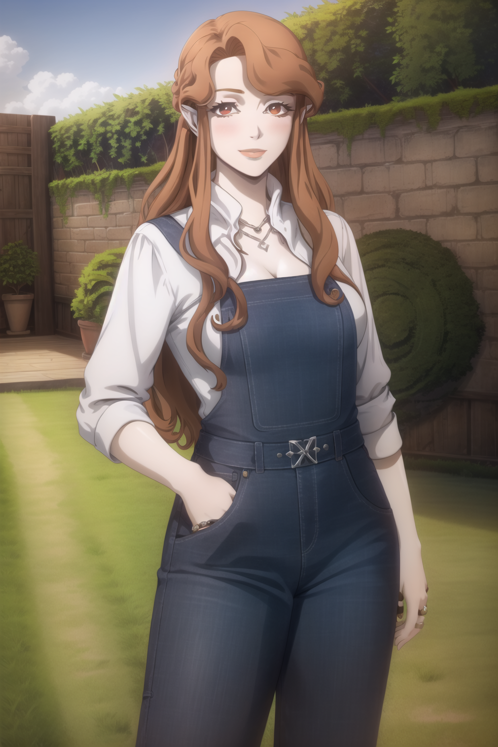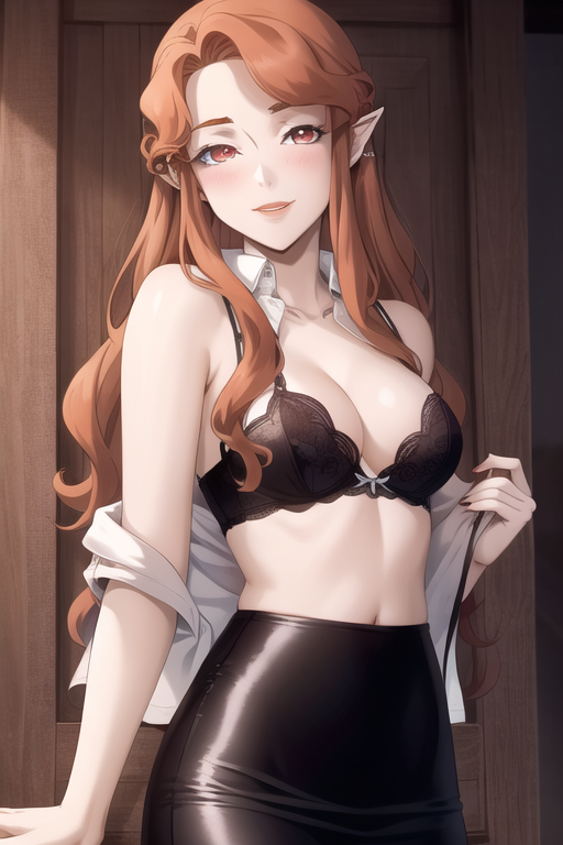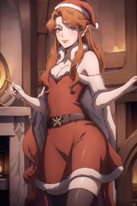 <lora:LenoreXL-v1-07:0.7>, ChopioLenore, 오렌지 머리카락, 긴 머리카락, 물결치는 머리카락, 옆머리, 반쪽 올림머리, 머리장식, 빨간 눈, 입술, 보는 시선,