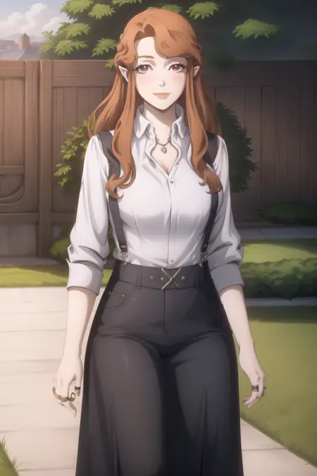 <lora:LenoreXL-v1-07:0.7>, ChopioLenore, 오렌지 머리카락, 긴 머리카락, 물결치는 머리카락, 옆머리, 반쪽 올림머리, 머리장식, 빨간 눈, 입술, 보는 시선,