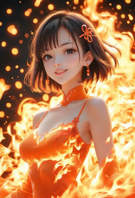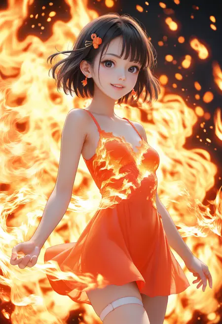 このLoRAは、炎をインスピレーションとした背景や衣装を作成するために設計されています。