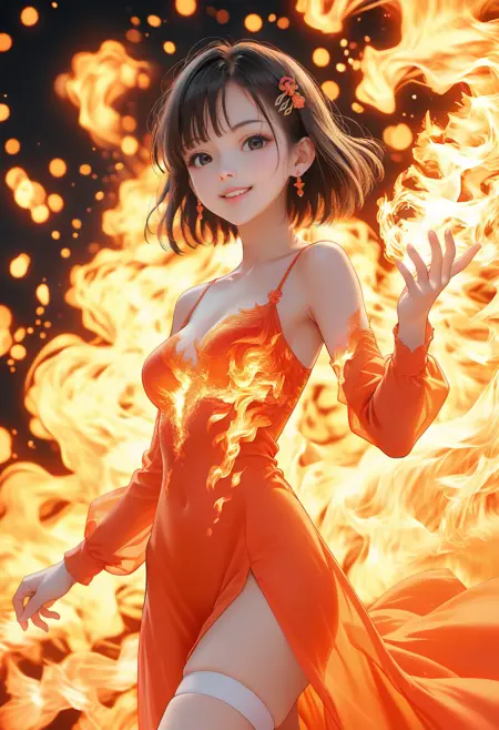 此 LoRA 用于生成灵感来自火焰的背景和服装。