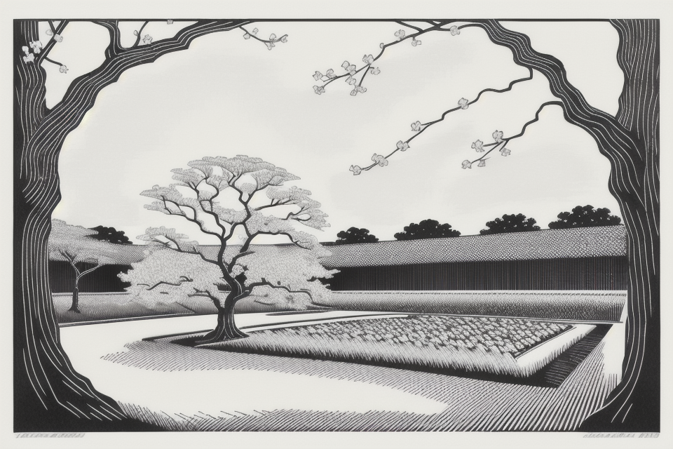 このモデルは、オランダの芸術家Samuel Jessurun de Mesquitaの木版画を用いて学習されました。デ・メスキータの幾何学的スタイルは、彼の弟子であるM.C.エッシャーの遠近法をねじ曲げた作品に影響を与えた可能性があります。