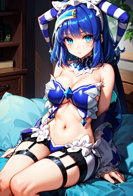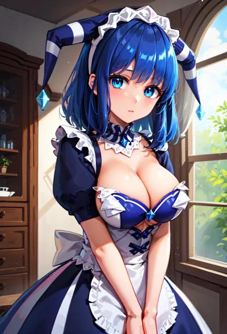 外見タグ:大きな胸、青い髪、青い目、短い髪