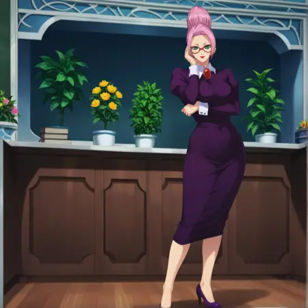 또한, 이 모델은 메시아의 일반적인 헤어스타일인 제가 “플로티 헤어”라고 명명한 스타일과, 선생님 복장의 위로 묶은 헤어스타일도 생성합니다. 제 능력 부족으로 인해 “헤어 다운” 스타일은 의도한 대로 작동하지 않습니다.