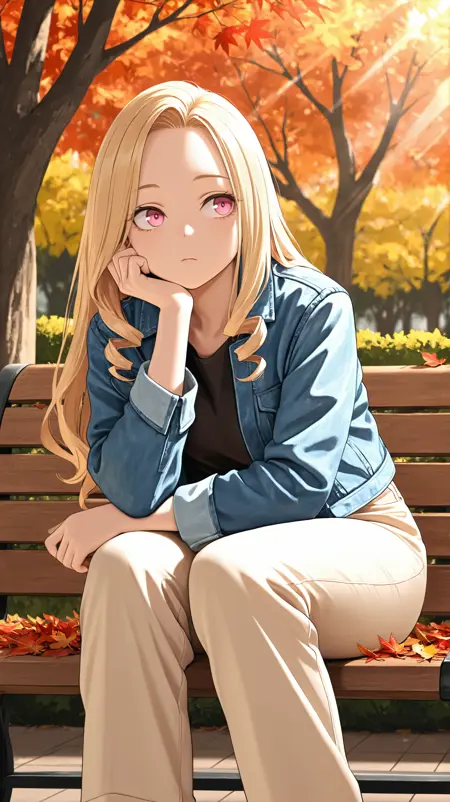long hair, blonde hair, drill hair, pink eyes, domino mask, purple mask, purple horns, purple bodysuit, white bodysuit, multicolored bodysuit, skintight, purple gloves